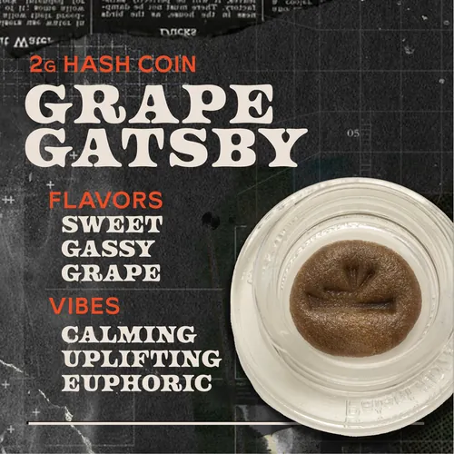 Grape Gatsby Indica Concentrate from Sunburn is available across Florida dispensaries. Check today’s price, potency, and participating locations—updated daily. When a discount is active, you’ll see the savings and can shop directly from the dispensary’s website with one tap. This product is 2.0 grams. Compare sizes and explore the same strain in vape or edible formats when available. Prefer shopping nearby? Use the links below to browse Florida dispensary deals and see the closest stores carrying Grape Gatsby - 2g Hash Coins Concentrate.