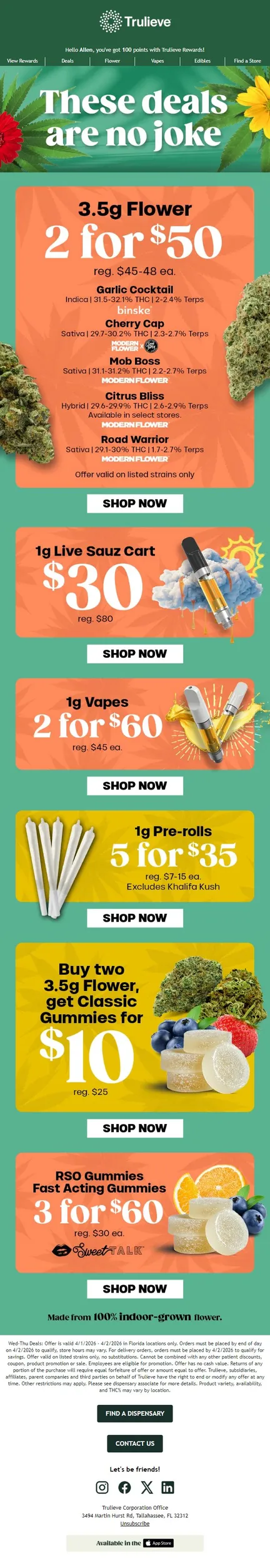 Notice: THC Hunter provides information about products offered by licensed Florida Medical Marijuana Treatment Centers (MMTCs). THC Hunter is not an MMTC and is not involved in any transaction for medical cannabis. Clicking "Visit Dispensary Website" will take you to a third-party website operated by the licensed MMTC, where all purchases occur in accordance with Florida law.
