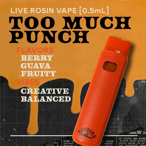 Too Much Punch Vape from is available across Florida dispensaries. Check today’s price, potency, and participating locations—updated daily. When a discount is active, you’ll see the savings and can shop directly from the dispensary’s website with one tap. This product is 0.5 grams. Compare sizes and explore the same strain in vape or edible formats when available. Prefer shopping nearby? Use the links below to browse Florida dispensary deals and see the closest stores carrying Too Much Punch - 0.5g Live Rosin Vaporizer.