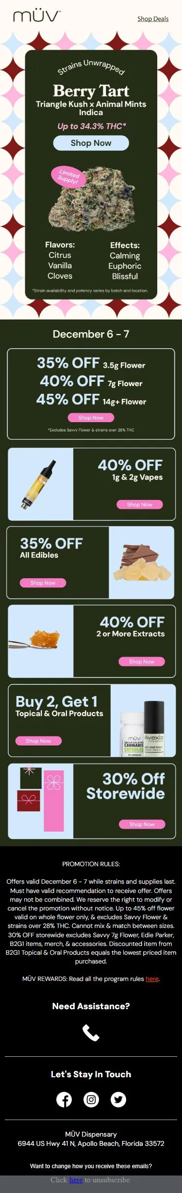 Notice: THC Hunter provides information about products offered by licensed Florida Medical Marijuana Treatment Centers (MMTCs). THC Hunter is not an MMTC and is not involved in any transaction for medical cannabis. Clicking "Visit Dispensary Website" will take you to a third-party website operated by the licensed MMTC, where all purchases occur in accordance with Florida law.